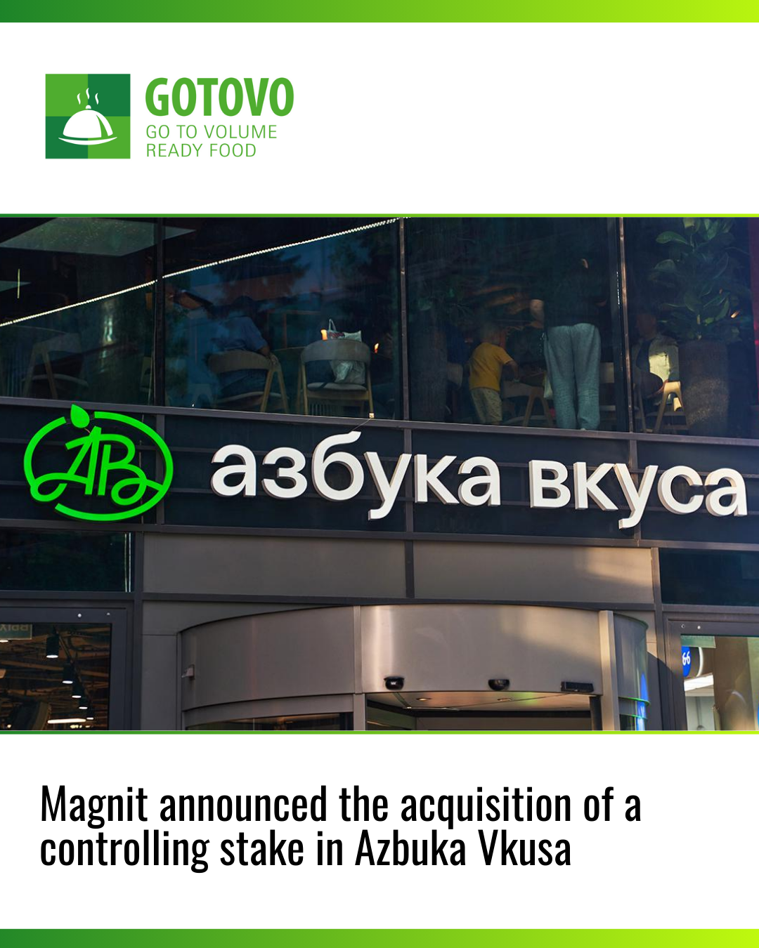 Magnit is acquiring a controlling stake in “Gorodskoy Supermarket,” the company managing the “Azbuka Vkusa” retail chain!